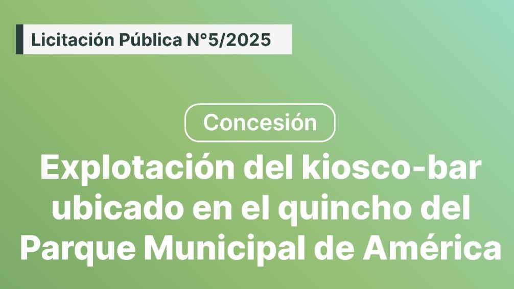La Municipalidad de Rivadavia llama a Licitación Pública Nº 5/2025 para la concesión para la explotación del kiosco-bar ubicado en el quincho del Parque Municipal, en la ciudad de América.